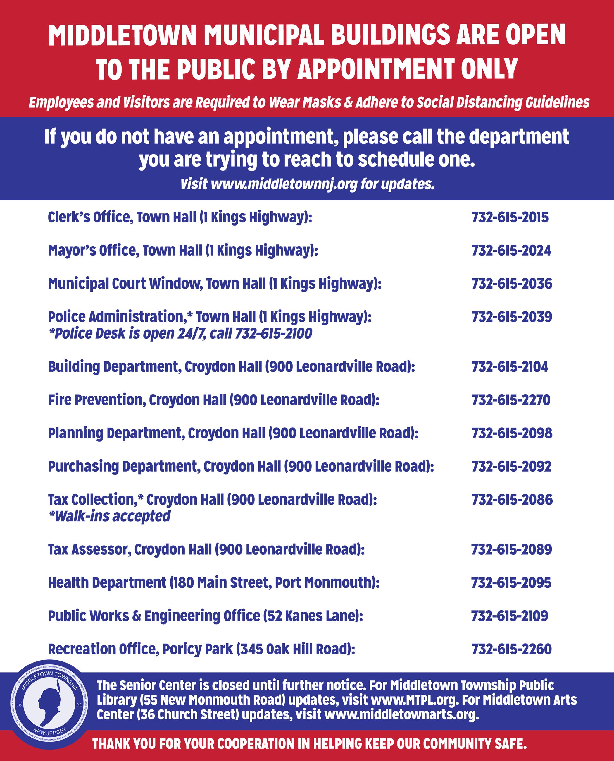 Lee Ann Russ Assessor Elizabeth Simpkins Deputy Assessor 33 Mechanic Street Cape May Court House NJ 08210 Phone. Name Middletown Township Assessor Address 1 Kings Highway Middletown New Jersey 07748 Phone 732-615-2089 Fax 732-671-4022 Hours Mon-Fri 830 AM-430 PM.
